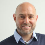 Portrait eines jungen Mannes mit Kinnbart und kurzen Haaren vor einer roten Ziegelwand. Die Mann lächelt.